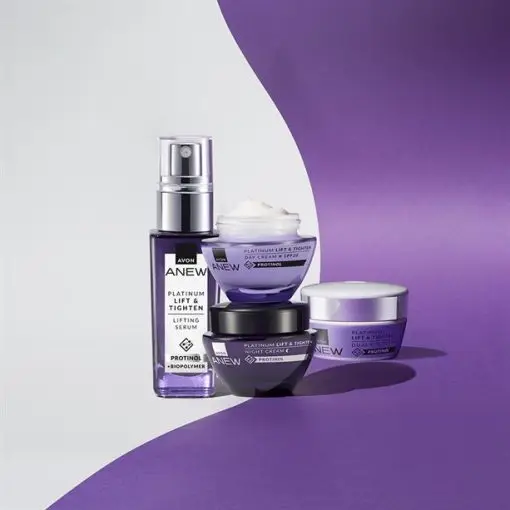 Ontdek het AVON ANEW Platinum Serum, je nieuwe geheime wapen voor een direct gelifte en stralende huid. Dit krachtige serum biedt onmiddellijk resultaat en geeft je huid een gelifte uitstraling die de hele dag aanhoudt. Het is speciaal ontwikkeld voor wie op zoek is naar zichtbaar en voelbaar jongere en stevigere huid.